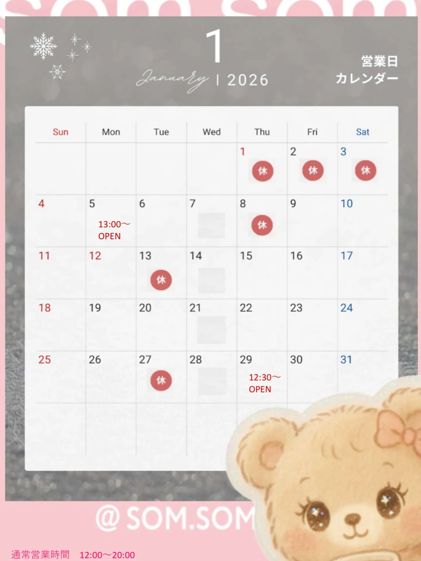 1月の営業予定となります✨
